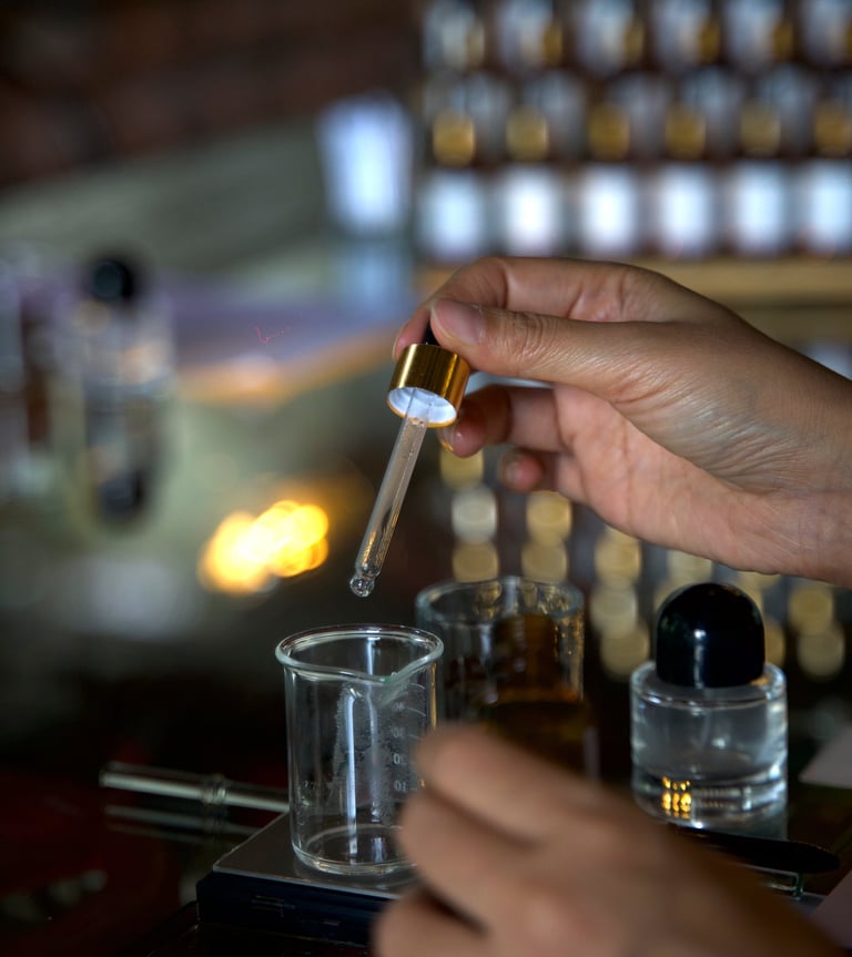 Mix your chosen fragrance notes to craft a unique and personalized perfume. Our expert will guide you through the blending process, helping you combine essential oils and aroma compounds with a carrier or alcohol. Adjust and refine your blend to achieve your perfect scent.